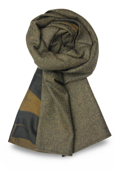 Green melange Herringbone Wool matching perfectly with the beautiful Batik style Print in green and mustard tones on Cotton & Silk