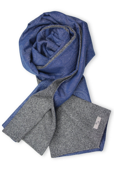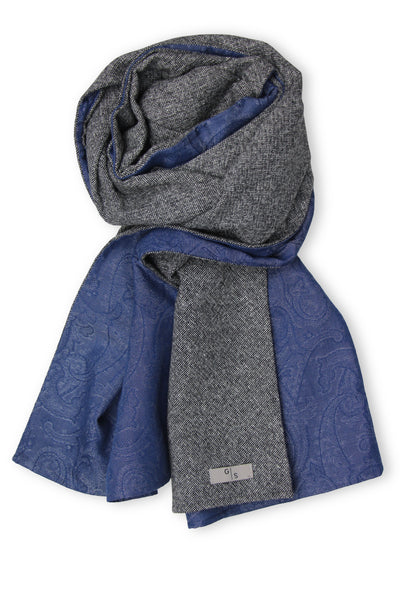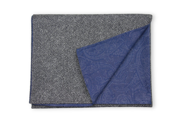 Beautiful combination of a soft Tweed Wool in antracite melange and blue Cotton Jacquard with Paisley Pattern