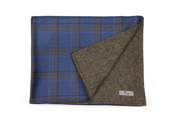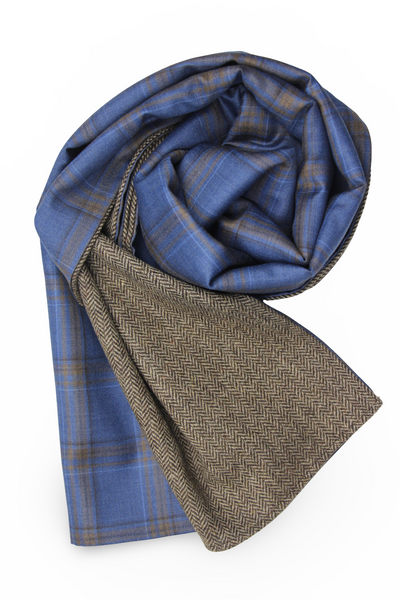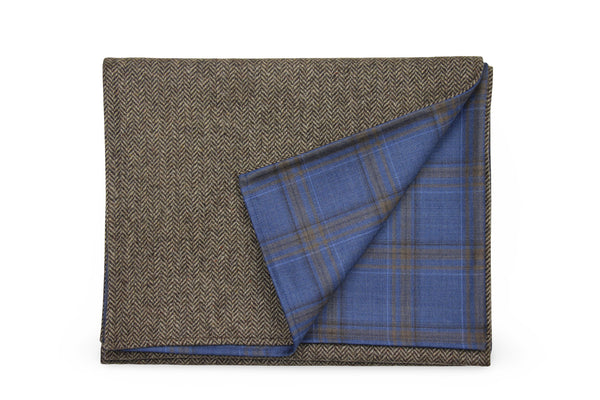 Brown Herringbone Wool combined with a very light, soft & silky Wool Check in blue and brown tones