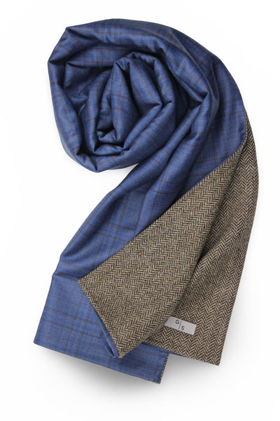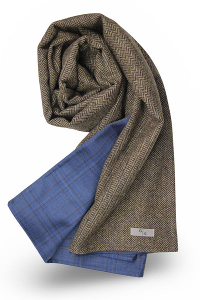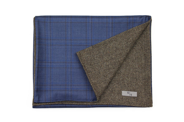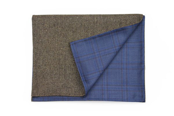 Brown Herringbone Wool combined with a very light, soft & silky Wool Check in blue and brown tones